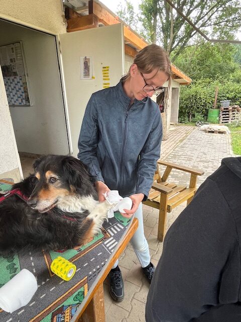 Besonders spannend war zu sehen, wie viele Grundprinzipien identisch sind: Ruhe bewahren, strukturiert vorgehen, lebenswichtige Funktionen prüfen und im Zweifel schnell handeln. Gleichzeitig wurde auch klar, wo die Unterschiede liegen – etwa im Umgang mit einem verunsicherten oder schmerzgeplagten Hund.